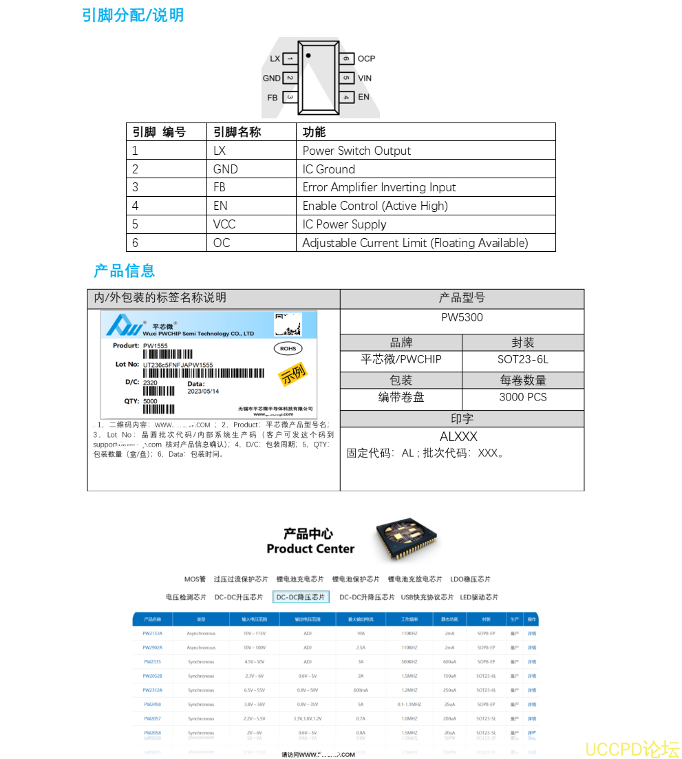 : 平芯微PW5300中文规格书