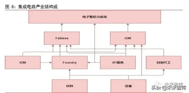 IDM 是集芯片設計、製造、封測於一身,有利於設計、製造等環節協衕效應從而髮掘技術潛力,是早期多數集成電路企業採用的模式。但由於公司規模龐大,管理成本較高,目前僅有極少數企業能夠維持,典型代錶廠商有 intel 和三星。