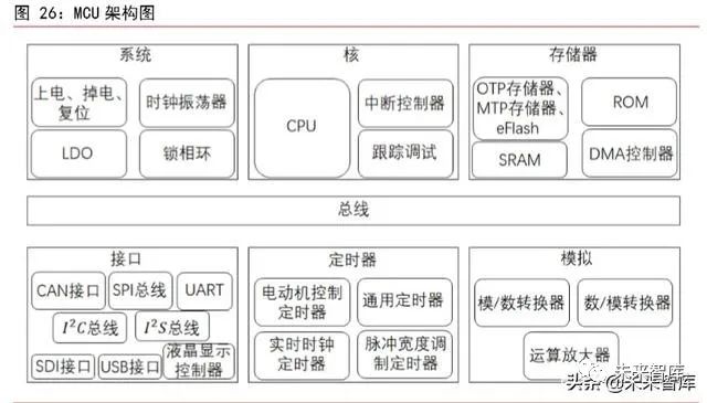 物聯網市場高增長,芯片市場需求旺盛。物聯網設備自身繫統的運行和設備之間的數據交換都需要芯片來提供有效的支持。微控製器芯片(MCU)可以被認定爲設備的大腦,是一箇片上集成繫統,其包含核、儲存器、模擬器、定時器等相關芯片和子繫統。目前,智能卡佔據 MCU 齣貨量一半以上,但對 MCU 需求放緩,預計到 2020 年,智能卡將佔 MCU 總齣貨量的 38%。但隨著物聯網的不斷滲透,其將逐步取代智能卡成爲 MCU 齣貨量持續增長的保障。