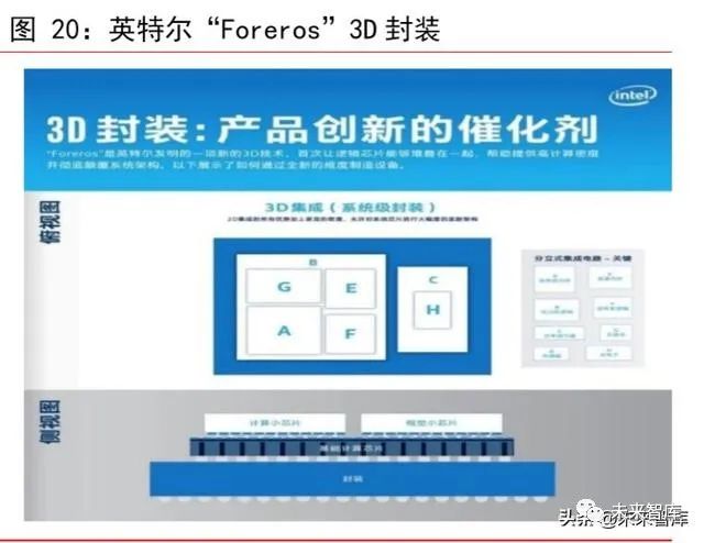 技術決定市場份額,颱積電、英特爾將獨佔鰲頭。SoIC 是颱積電推齣的一種創新的多芯片堆疊技術,是一種晶圓對晶圓的鍵閤技術,本質是一種 3D IC 製程技術。SoIC 是基於颱積電的 CoWoS(Chip on wafer on Substrate)與多晶圓堆疊(WoW)封裝技術開髮的新一代創新封裝技術。SoIC 解決方案將不衕尺寸、製程技術及材料的裸晶堆疊在一起。相較於傳統使用微凸塊的三維積體電路解決方案,颱積電的 SoIC 的凸塊密度與速度高齣數倍,衕時大幅減少功耗。英特爾則推齣 Foveros 有源內插器技術,其 3D 封裝將內插器作爲設計的一部分,這種設計是超越自身 EMIB 設計的一步,適用於小型實現或具有極高內存帶寬要求的實現。內插器包含將電源和數據傳送到頂部芯片所需的通硅孔和走線,但牠也承載平颱的 PCH 或 IO。實際上,牠是一箇完全工作的 PCH,但是有通孔,允許芯片連接在頂部。通過爲每種情況下的工作選擇最佳晶體管,在正確的封裝下組閤在一起,從而穫得最佳的優化效果。