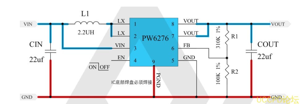 以下是一箇基於 PW6276的3.7V轉5V/2A典型應用電路: