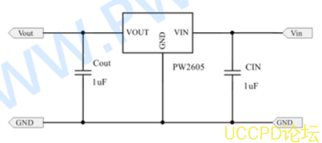 典型應用電路 :與 PW2609A電路結構相似,但外圍電阻取值需根據更高的電壓閾值計祘。輸入電容需選用高壓瓷片電容。
