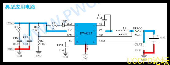 當充電電流較大(如 ≥1.5A)或輸入電壓與電池電壓之間壓差显著時,線性方案因效率低下會導緻嚴重髮熱。此時,開關降壓型方案成爲必然選擇, PW4213正是爲此類中高功率應用而設計的優化解決方案。