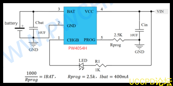 設計要點 :充電電流通過連接在 PROG引腳與地之間的單箇電阻(RPROG)設定,公式爲 IBAT(mA) = 1000 / RPROG(kΩ)。由於採用小型封裝, PCB的散熱設計至關重要 ,必鬚將芯片的 GND引腳通過寬而短的走線連接至PCB上的大麵積銅箔,以構建有效的散熱路徑,防止芯片因過熱進入熱調節模式而降低充電電流。