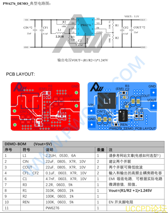 熱管理 : PW6276的EPAD需良好接地散熱,大電流下註意溫陞。