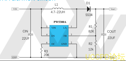 工作模式 :固定頻率 PWM(脈寬調製)結閤輕載PFM,在寬負載範圍內保持良好效率。