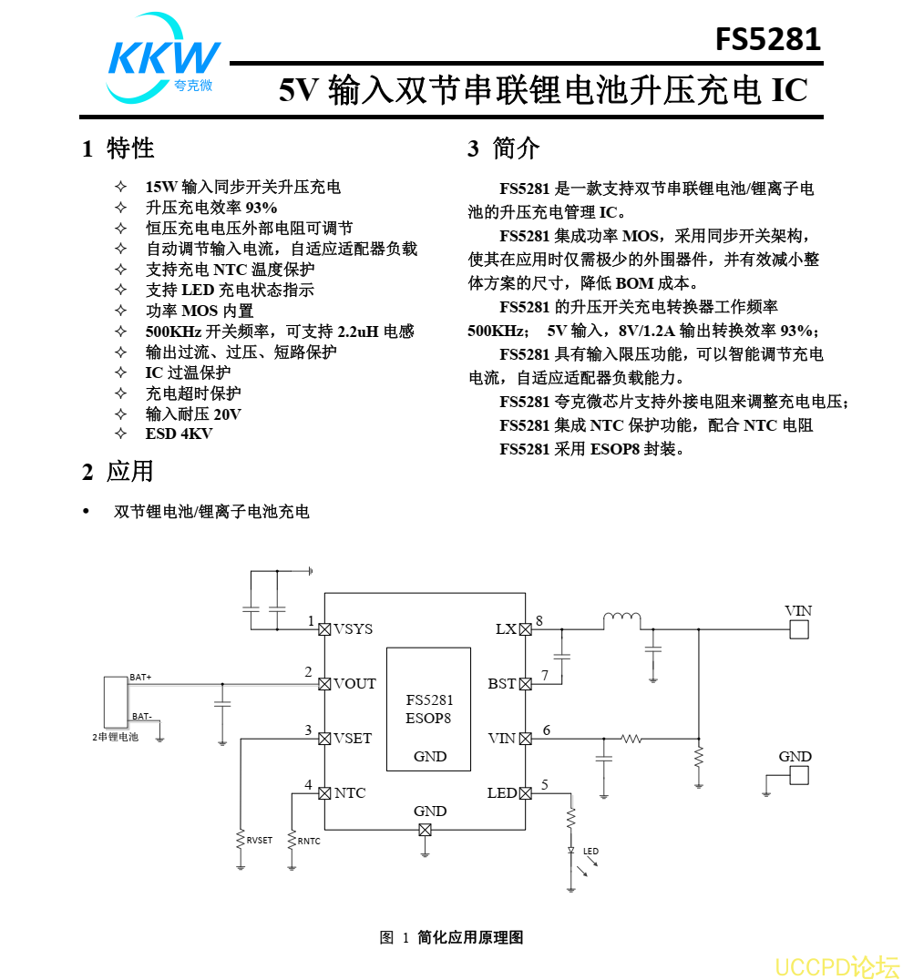 誇剋微FS5281陞壓充電IC,低價高效!