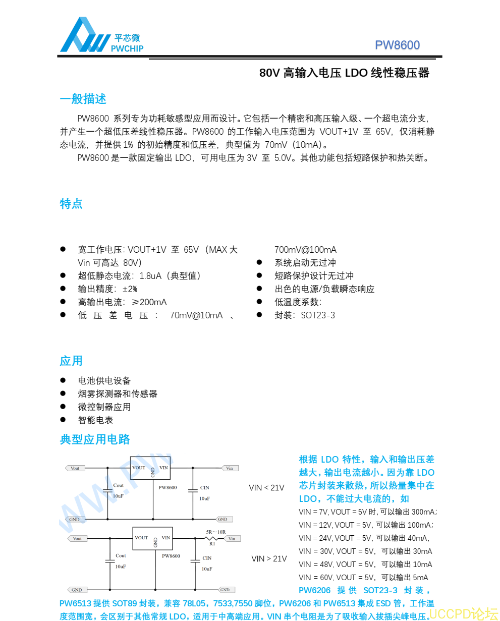 平芯微PW8600中文規格書
