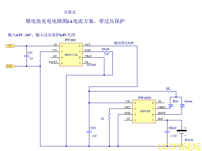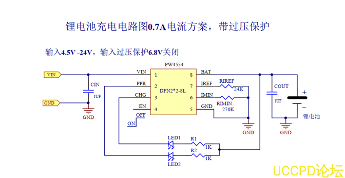 PW2601+PW4056的集閤芯片,內置過壓保護的鋰電池充電 IC-PW4554。