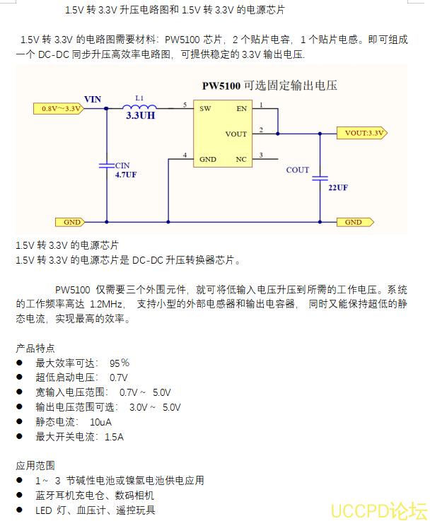 1.5V轉3.3V陞壓電路圖和1.5V轉3.3V的電源芯片