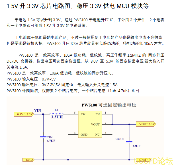 1.5V陞3.3V芯片電路圖,穩壓3.3V供電MCU模塊等