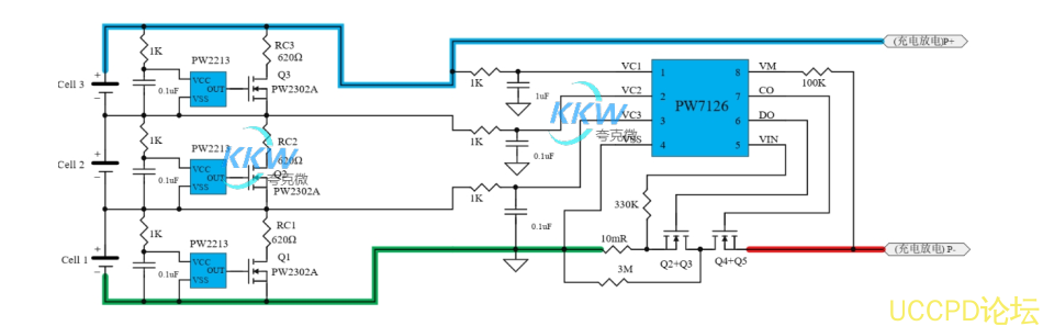 PW7126 三串鋰電池得過充,過放,過流檢測保護電路芯片,併聯 MOS 可增加過流保護值。