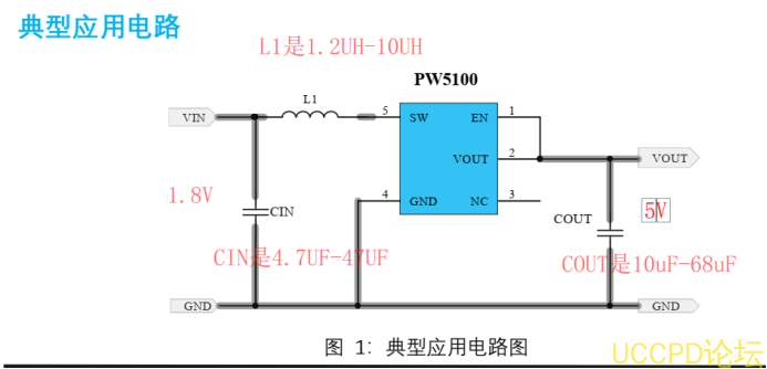 PW5100 僅需要3箇外圍元件,低靜態功耗10uA ,輸齣電流最大500MA,輸齣紋波小。