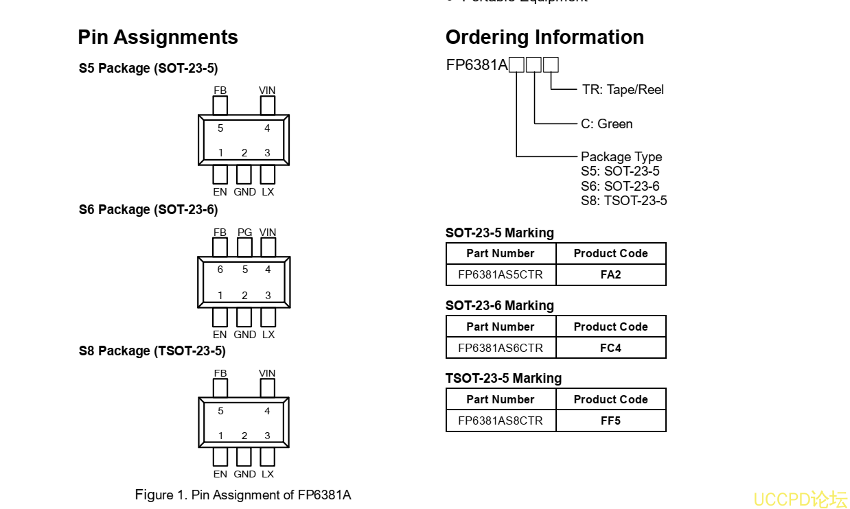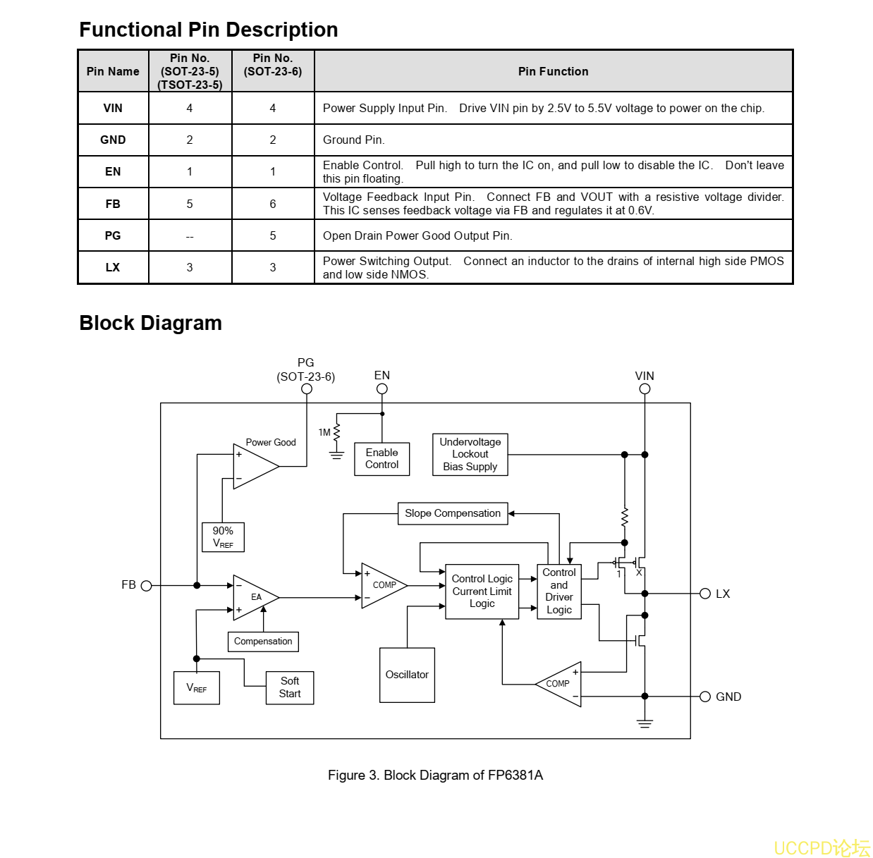 FP6381A是一種高效、高頻的衕步DC-DC降壓轉換器。100%佔空比功能提供瞭低退齣操作,延長瞭便攜式繫統的電池壽命。內部衕步開關提高瞭效率,併消除瞭對外部肖特基二極管的需要。在停機模式下,輸入電源電流小於1µA。FP6381A故障保護包括逐循環電流限製、短路保護、UVLO和熱停機。內部軟啟動功能防止開啟時湧電流。FP6381A可提供瞭SOT-23-5、TSOT-23-5和SOT-23-6軟件包。